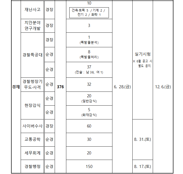 경감, 경위, 경장등을 합치면 총 100여명 되네요, 항상 채용일정은 전체적인 일정이 먼저 나오고 그 후 상, 하반기 세부적인 공고가 진행됩니다.