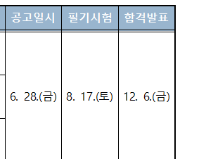 하반기 채용일정은 공고가 6월 28일, 필기시험 8월 17일, 합격자 발표가 12월 6일인데, 자세한 하반기 공고는 6월 28일에 발표됩니다. 자세한 공고가 나오면 제가 다시 한번 포스팅을 진행하도록 하겠습니다.