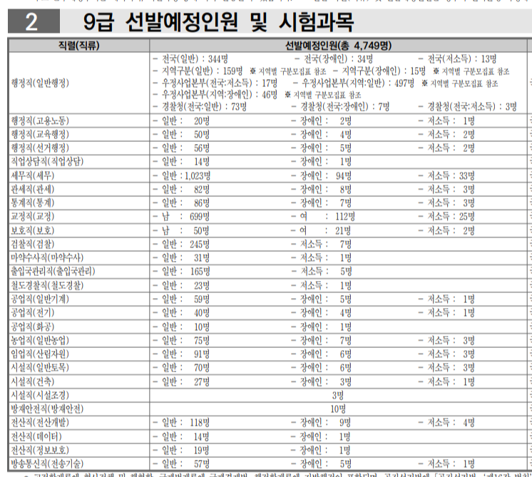 3. 9급공무원 선발인원