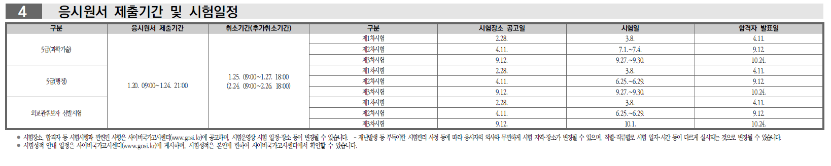 1. 5급 공무원 행정고시 시험일정