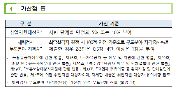 올해 바귄점이 있다면 최종합격자 결정 시 무도분야 자격증 1%는 체력검사에 포함된다는 점 입니다. 과거에는 체력검사 옆에 괄호로 되어 있지 않았는데 올해는 확실하게 명시가 되어 있습니다.