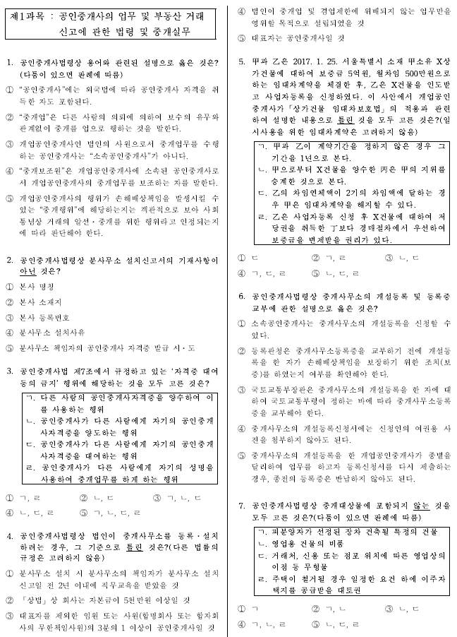 2017년 제28회 공인중개사 시험 기출문제 및 정답